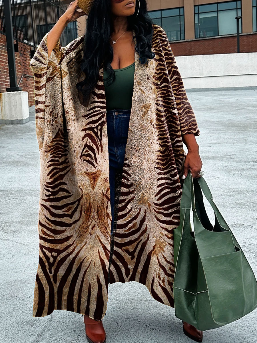Women's Colorful Retro Stripes Art Print Long Cardigan Sweater