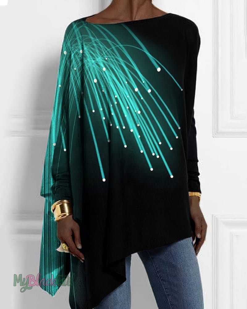 Fluorescent Colored Lines Long Sleeve Loose Hem Top