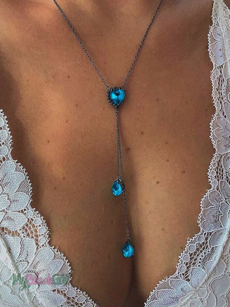 Wearshes Heart Shaped Water Drop Gemstone Pendant Necklace