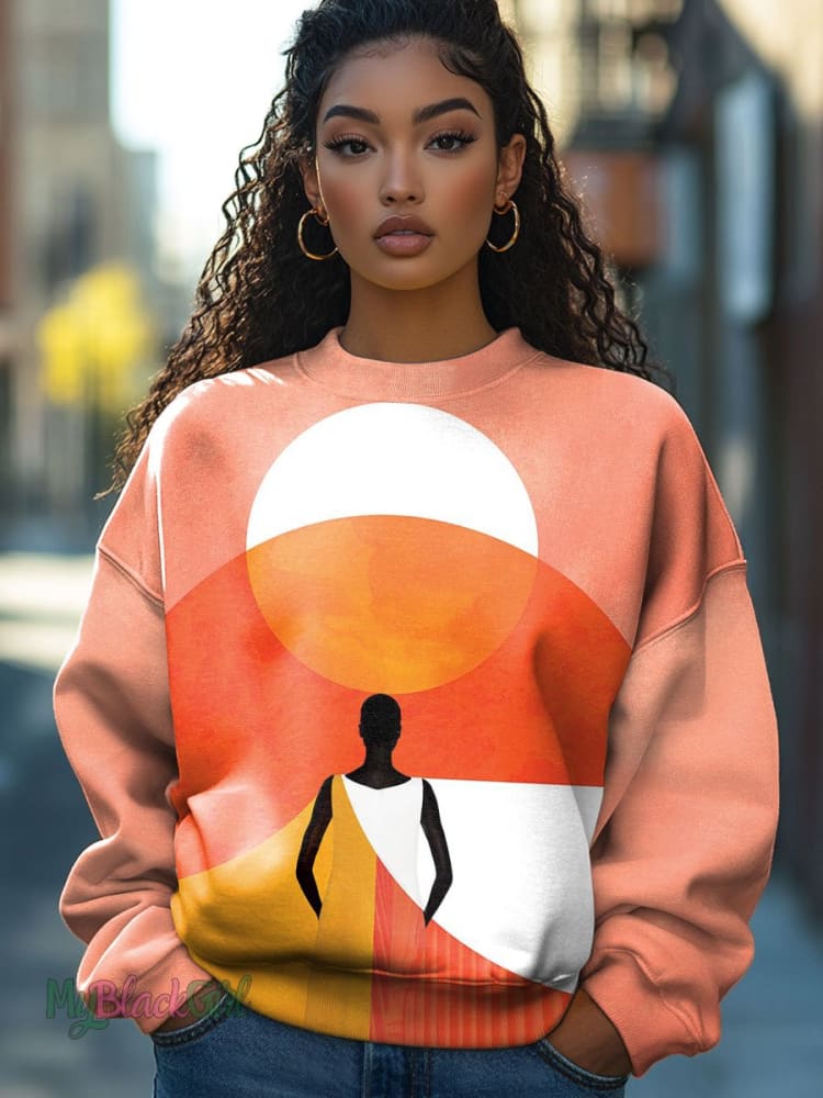 Vintage Colorblock Woman Art Print Casual Sweatshirt
