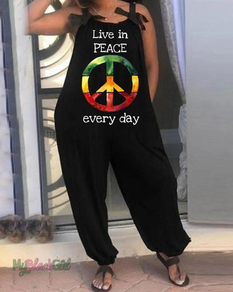 White Letters Colored Icons Printed Women's Jumpsuit