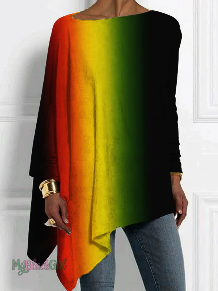 Women's Black History Month Ombre Long Sleeve Asymmetric Top