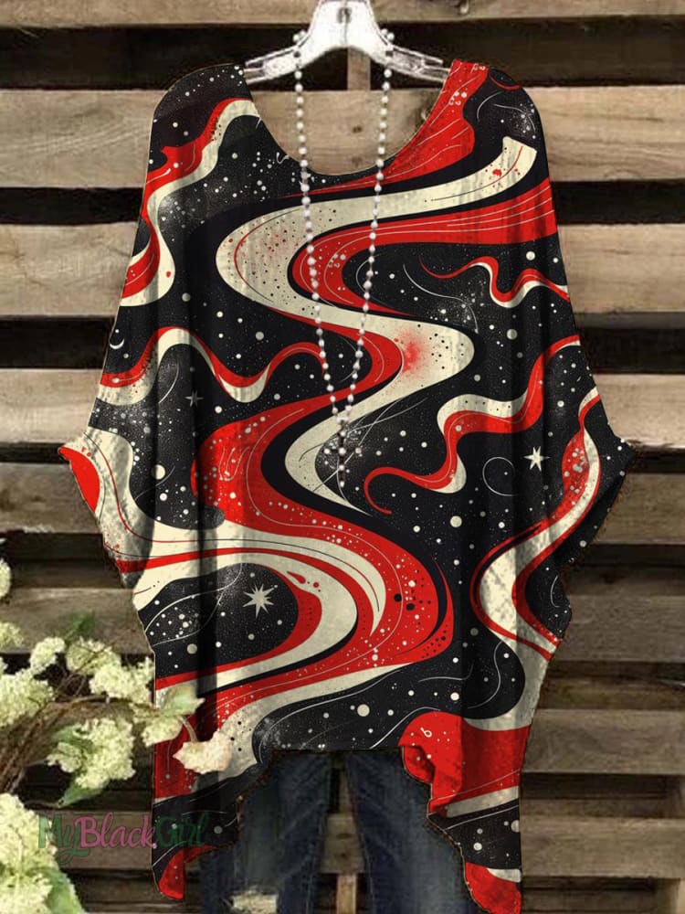 Women's Retro Abstract Wave Print Top