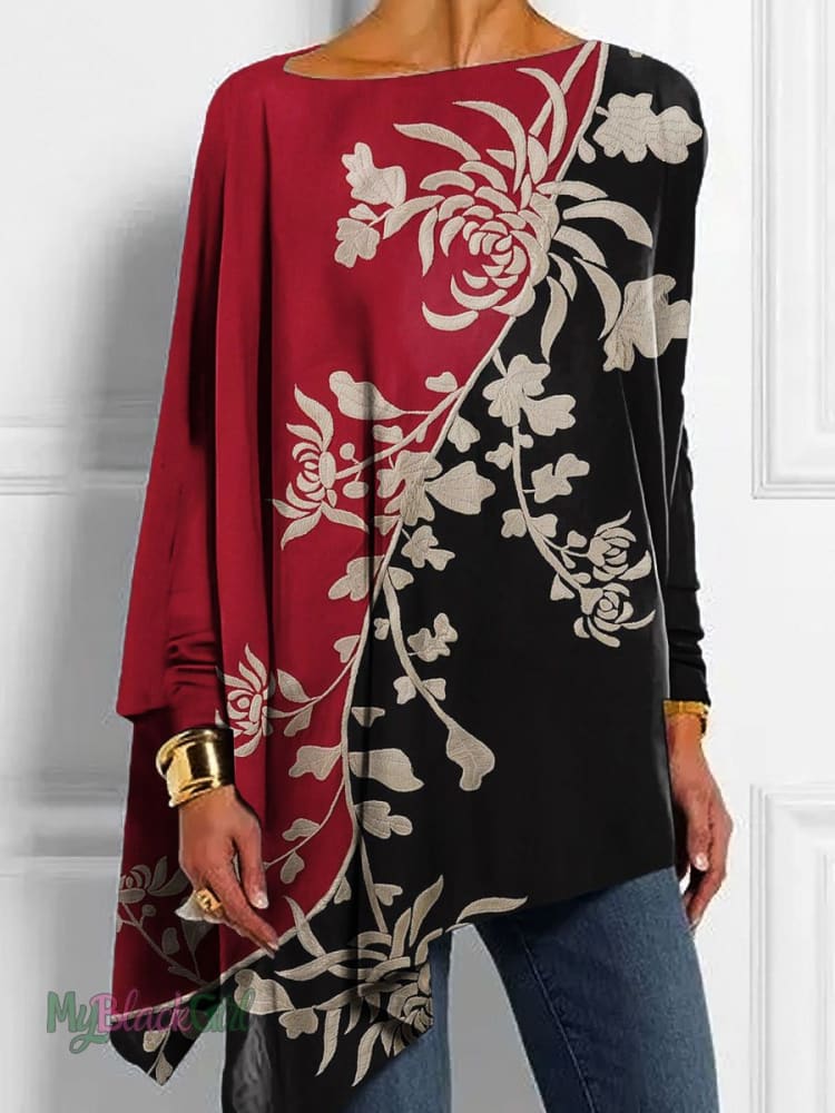 Women's Vintage Ethnic Colorblock Floral Art Print Button Back Casual Knitted Shirt